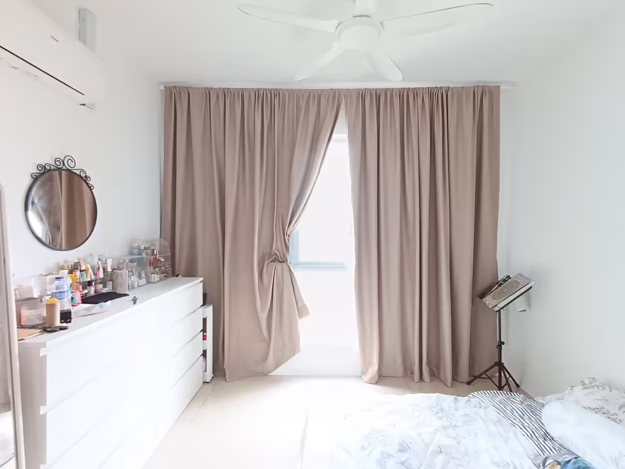 Typically includes built-in fixtures—kitchen cabinets, wardrobes, air conditioning units, water heaters, and curtains.