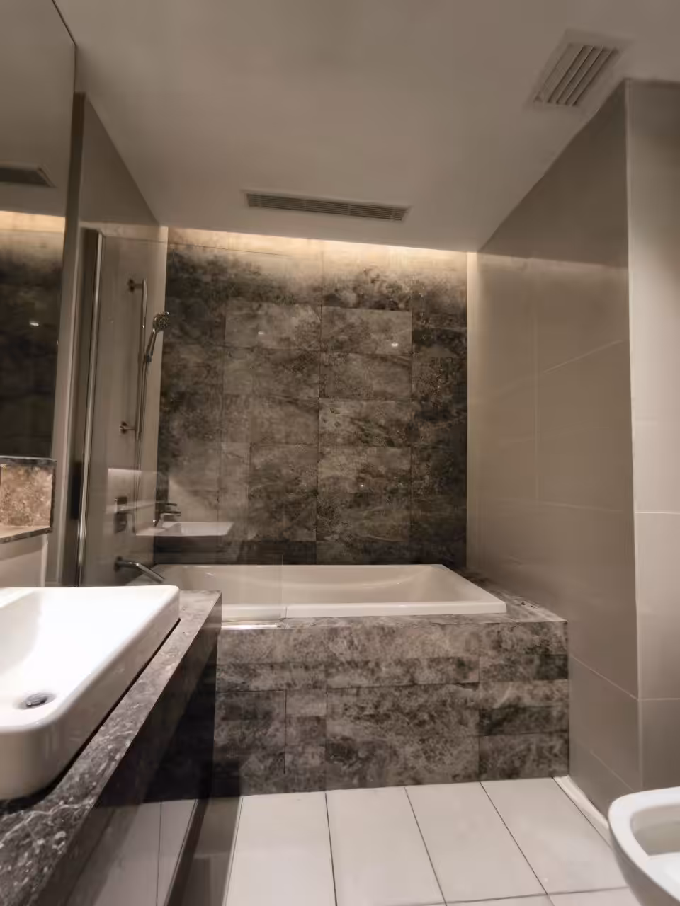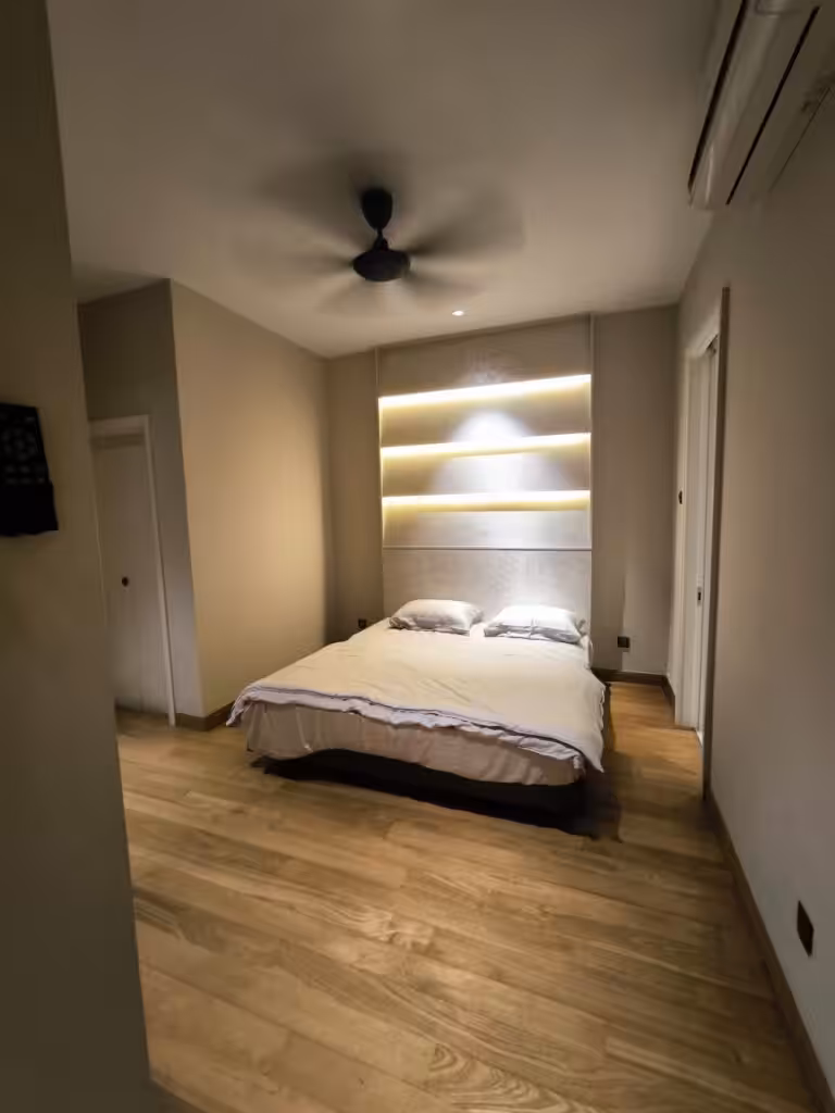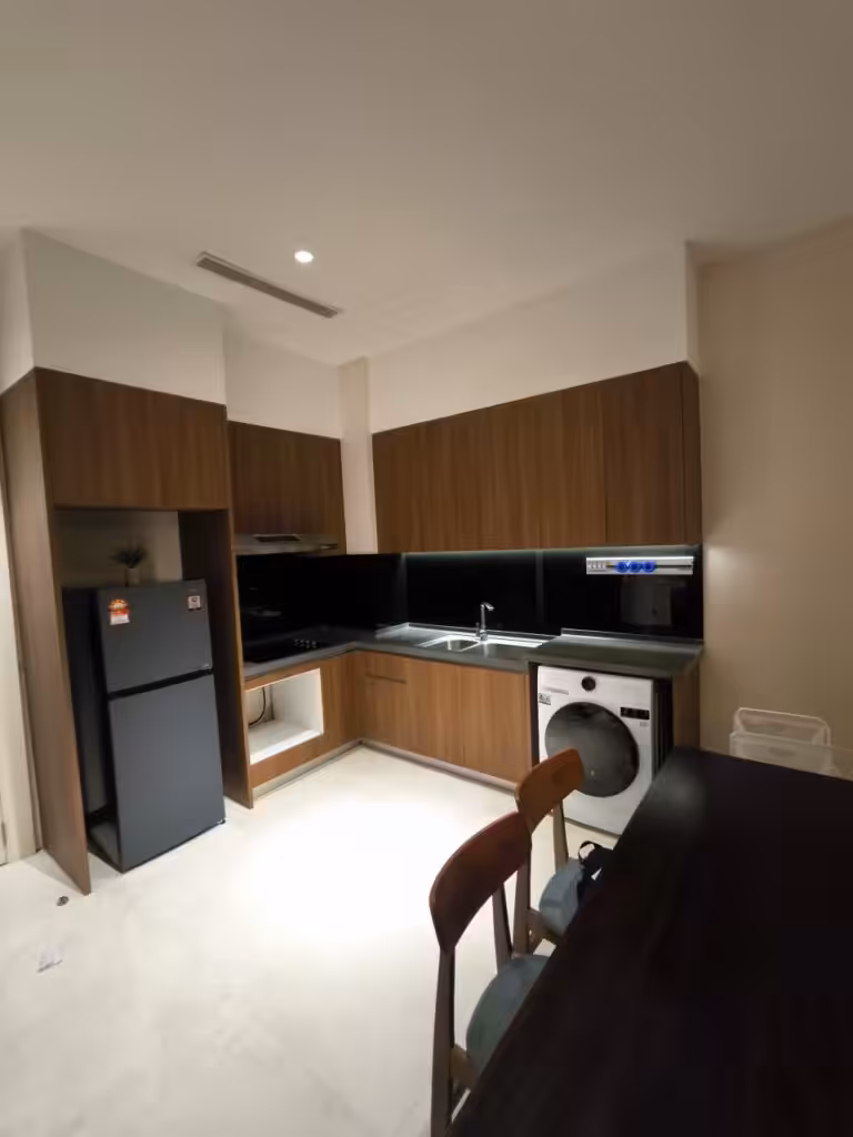 Typically includes built-in fixtures—kitchen cabinets, wardrobes, air conditioning units, water heaters, and curtains.