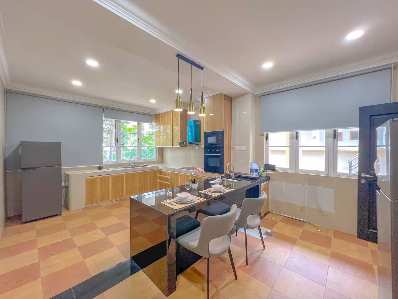 Typically includes built-in fixtures—kitchen cabinets, wardrobes, air conditioning units, water heaters, and curtains.
