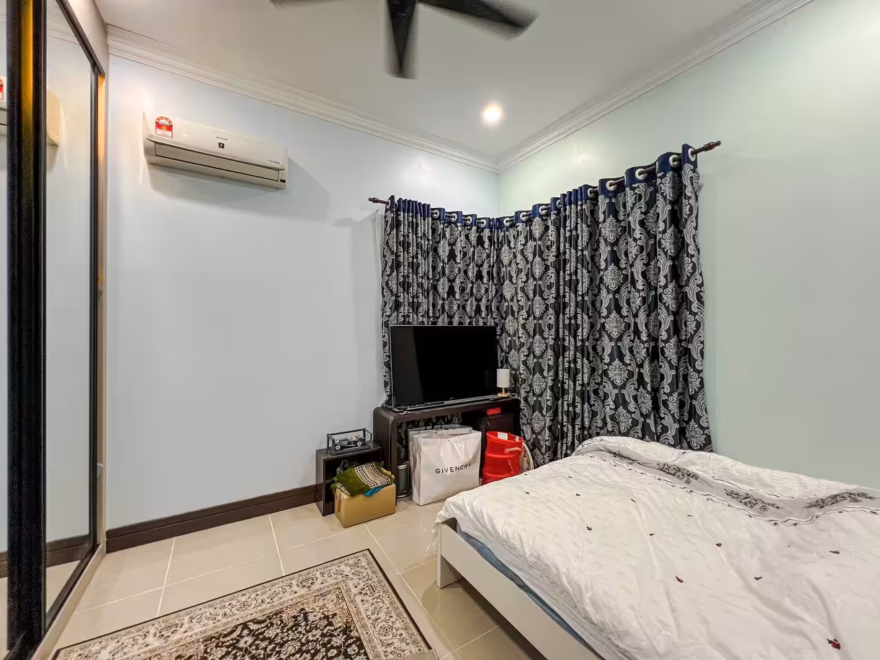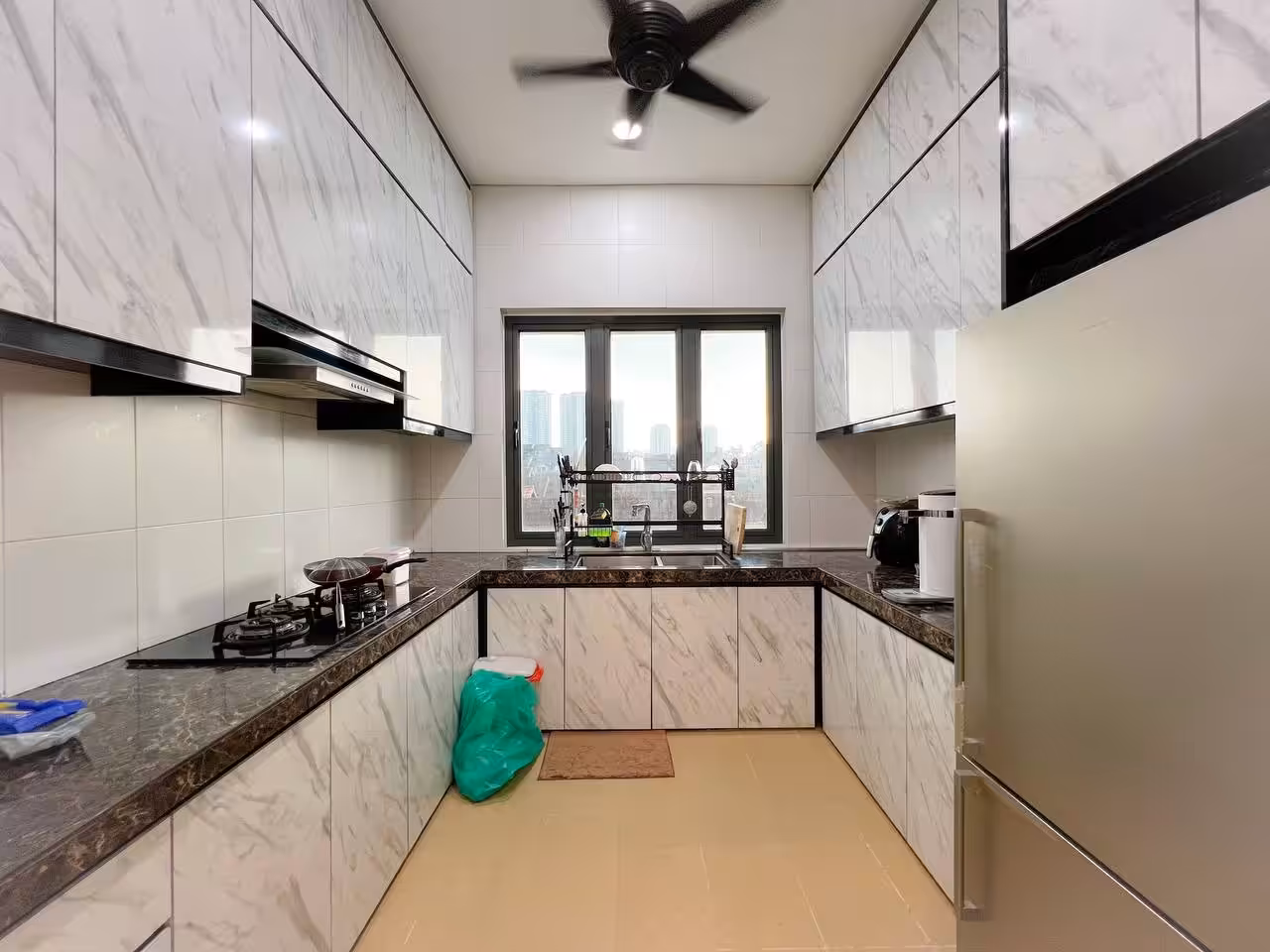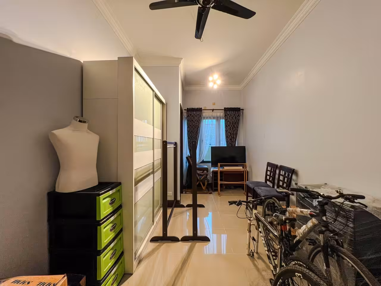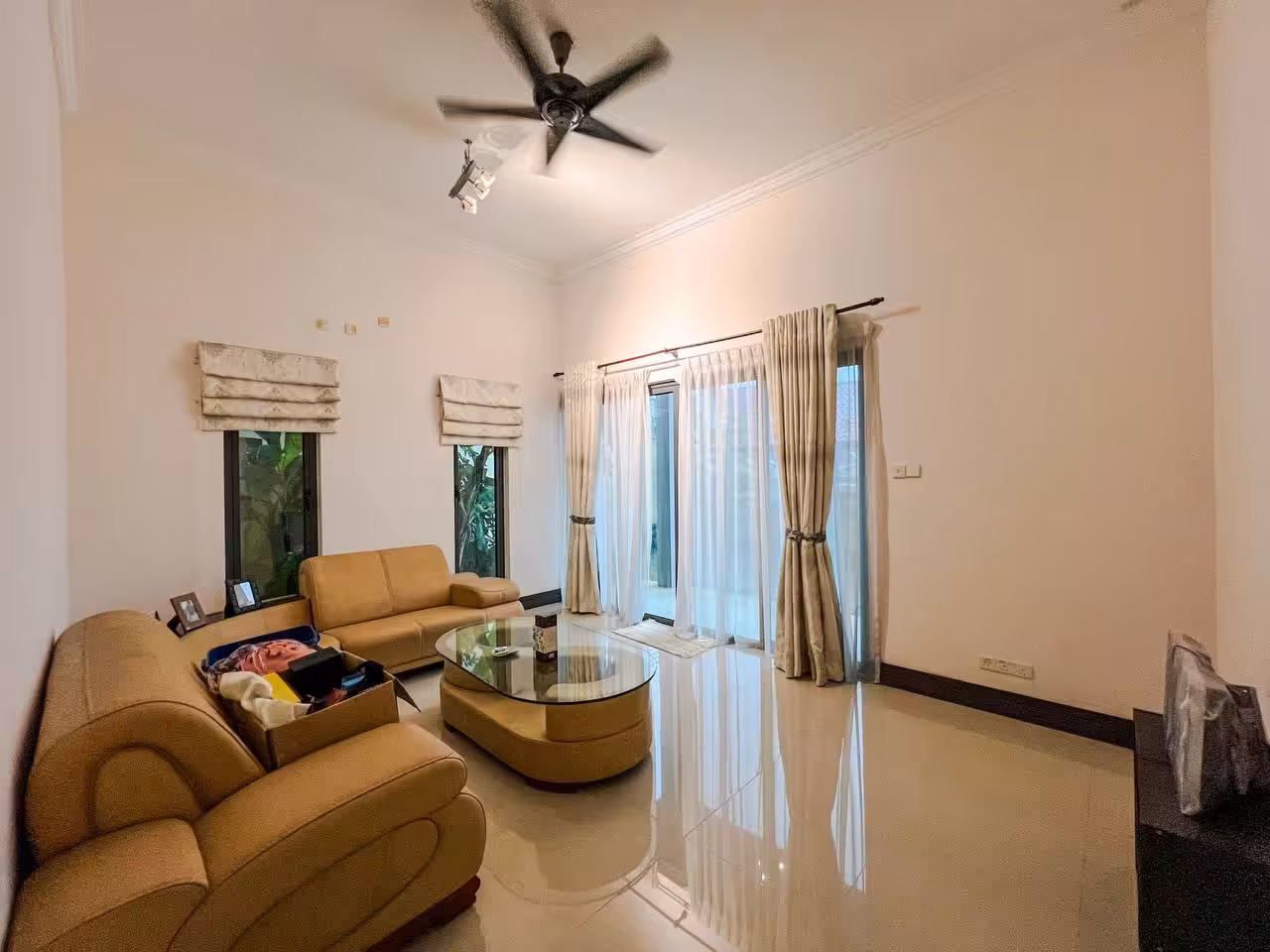 Typically includes built-in fixtures—kitchen cabinets, wardrobes, air conditioning units, water heaters, and curtains.
