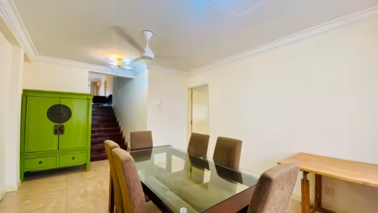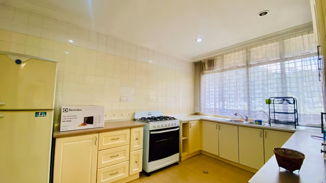 Typically includes built-in fixtures—kitchen cabinets, wardrobes, air conditioning units, water heaters, and curtains.