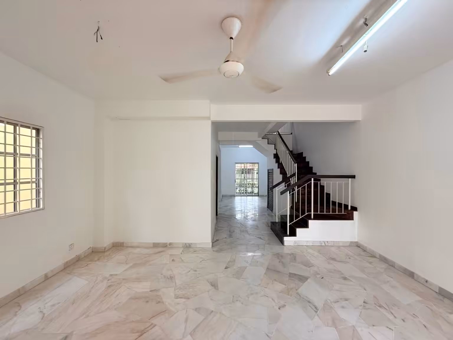 Situated in the well-established neighbourhood of Presint 9, Putrajaya, this double-storey terrace house carries a charming Mediterranean-inspired facade that gives it a warm, distinctive character from the outside. The exterior features arched windows, terracotta roof tiles, and warm cream and rust tones that have held up well over the years. Pull into the covered porch and you have got comfortable space for two cars — a practical touch for family households. Inside, the unit is bare and unfurnished, which is actually one of its strongest selling points. The living area is spacious and airy, finished with marble-effect flooring and clean white walls that let in plenty of natural light. The staircase is neatly positioned, keeping the main living space open and uninterrupted. For buyers who have a clear vision of how they want their home to look and feel, a bare unit like this is a rare opportunity to start fresh without paying a premium for someone else’s renovation. The bones of this house are solid — all it needs is your personal touch.