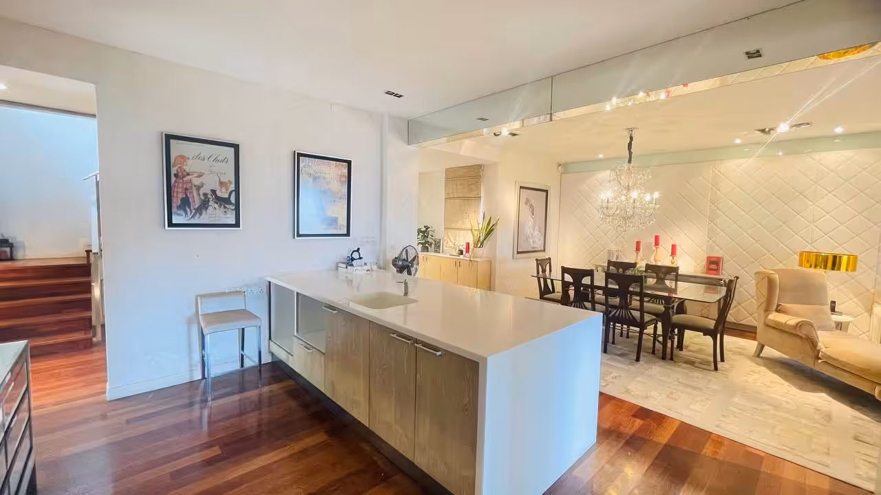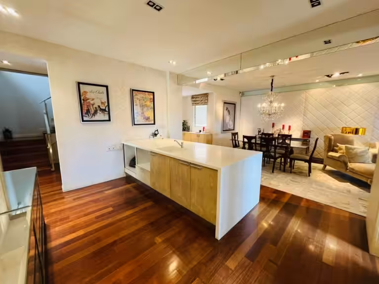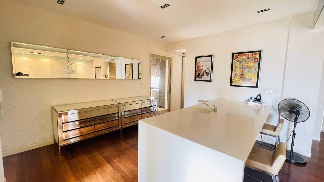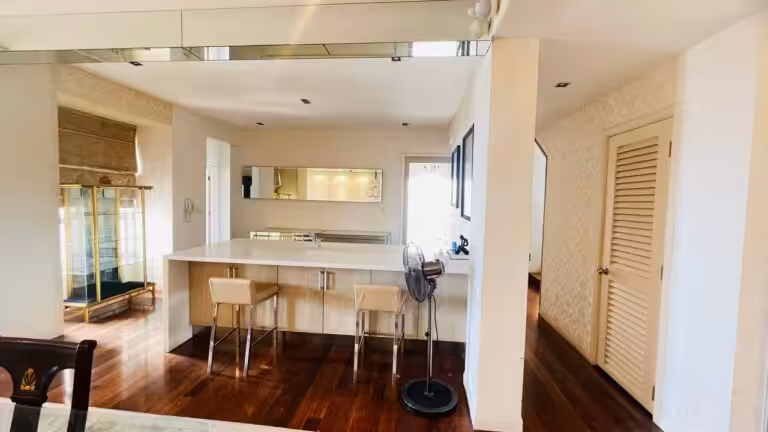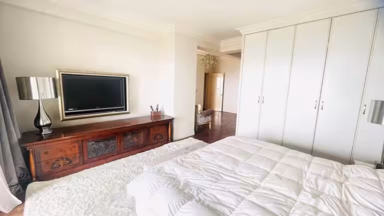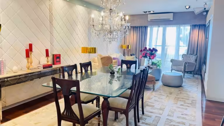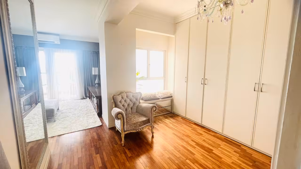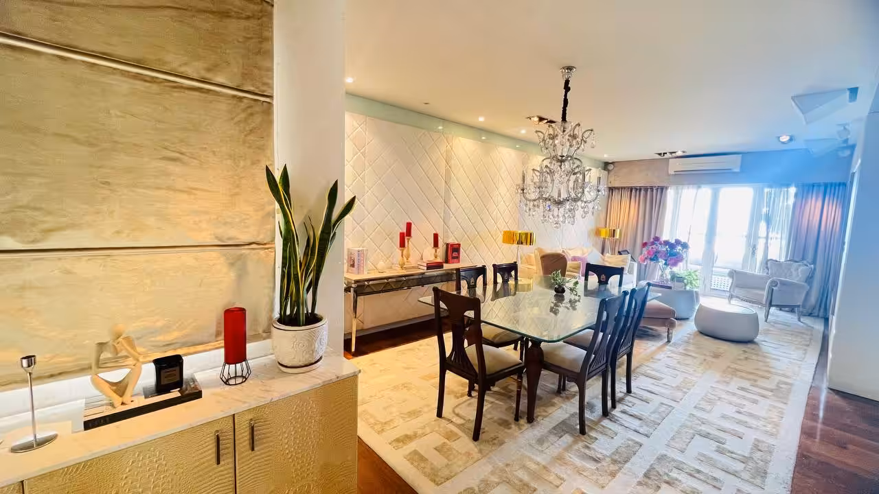 Typically includes built-in fixtures—kitchen cabinets, wardrobes, air conditioning units, water heaters, and curtains.