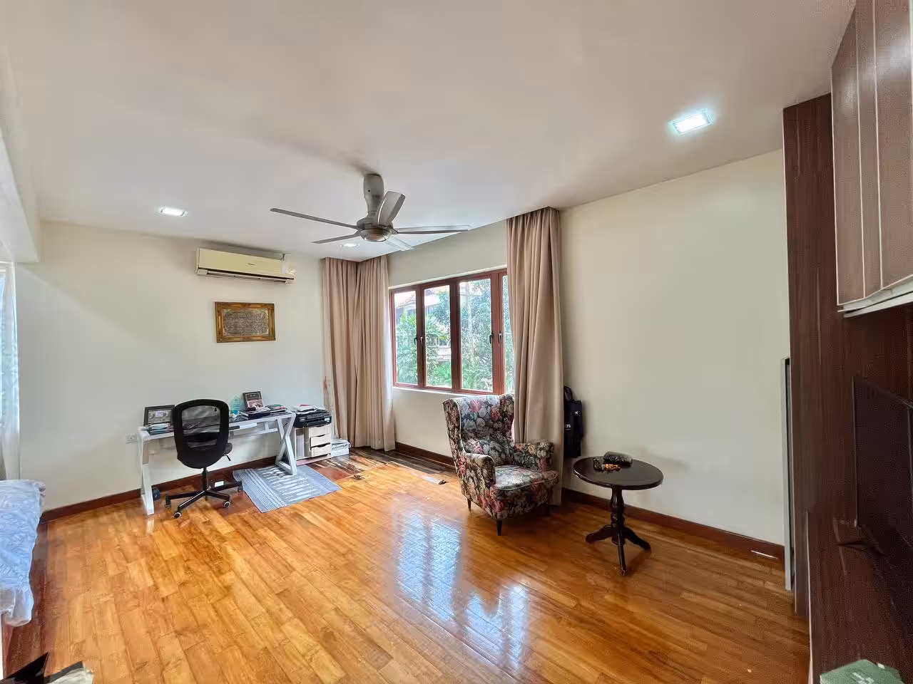 Typically includes built-in fixtures—kitchen cabinets, wardrobes, air conditioning units, water heaters, and curtains.