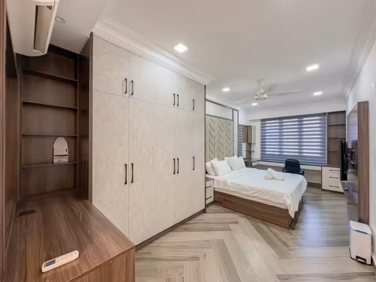Typically includes built-in fixtures—kitchen cabinets, wardrobes, air conditioning units, water heaters, and curtains.