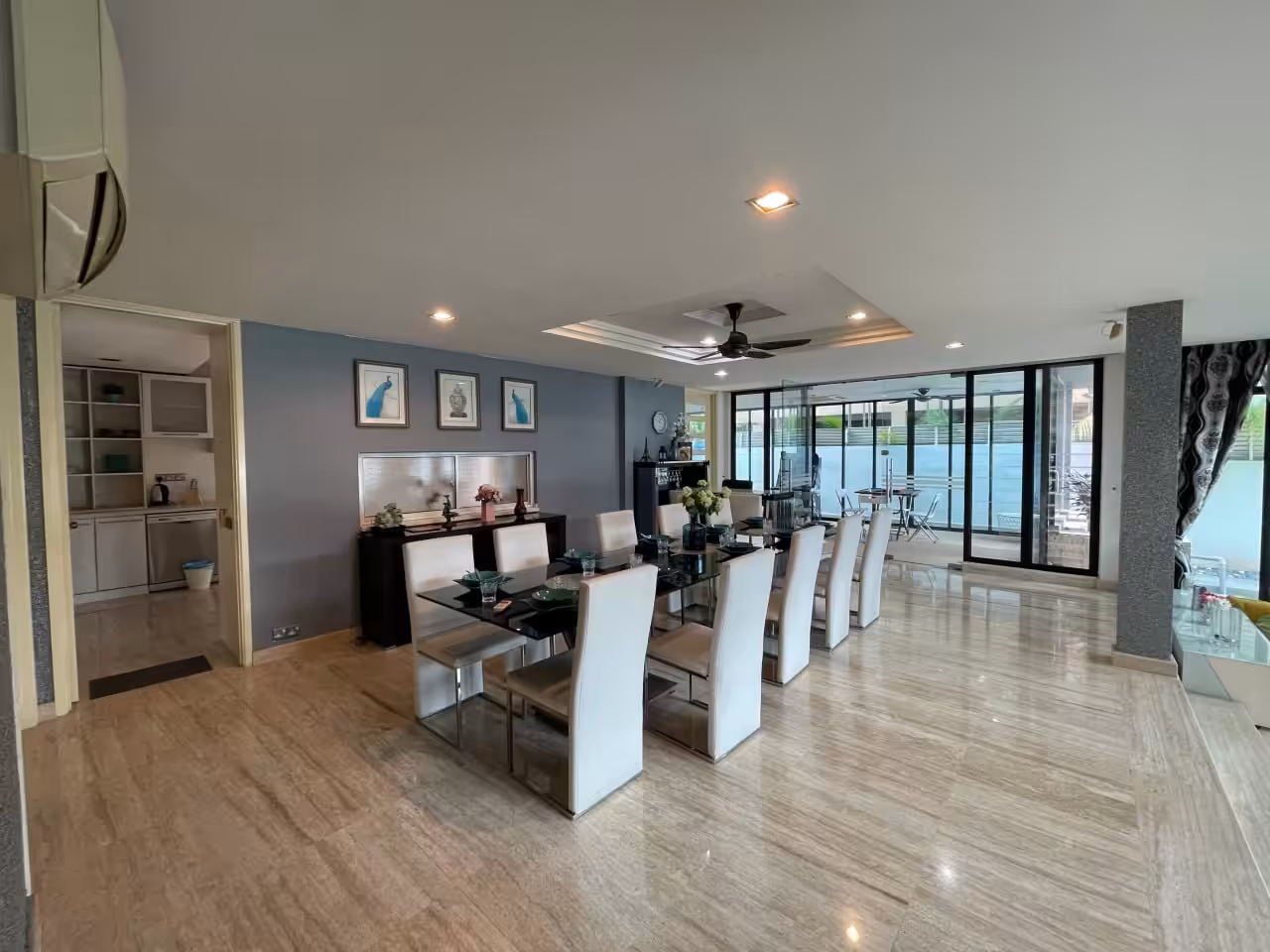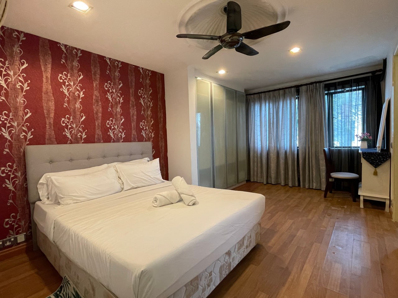 Typically includes built-in fixtures—kitchen cabinets, wardrobes, air conditioning units, water heaters, and curtains.