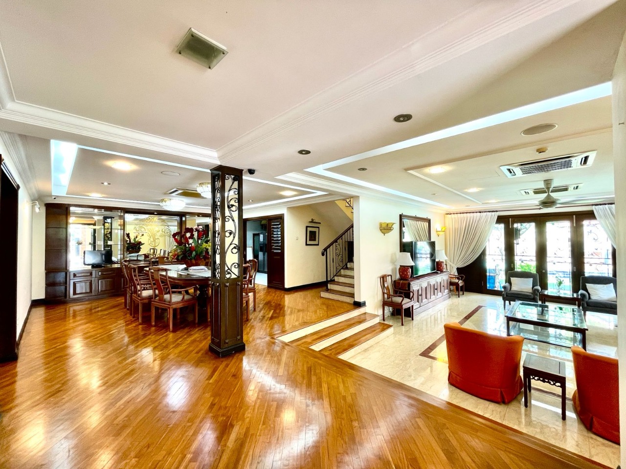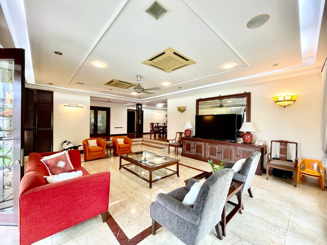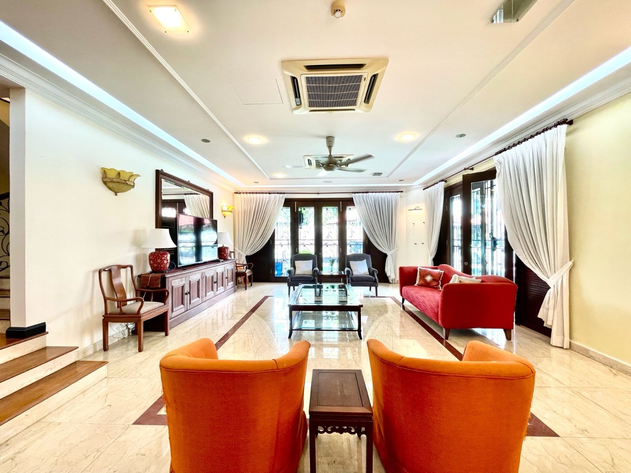 Typically includes built-in fixtures—kitchen cabinets, wardrobes, air conditioning units, water heaters, and curtains.